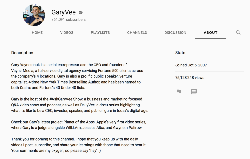 If you’re looking for an example, Gary Vaynerchuck’s description is golden: